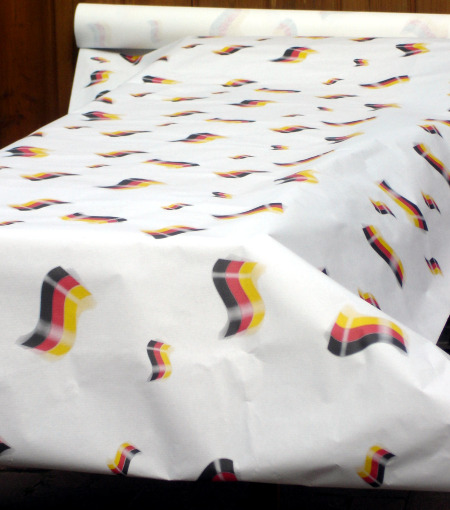 Außerdem findet man hier, und nur hier Papiertischdecken mit Deutschland-Fähnchen!! (Siehe Bilder unten)